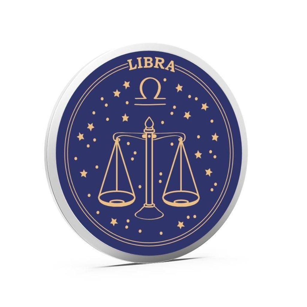 The Libra zodiac coin has a balance scale sign that stands for peace and fairness. It reminds Libra people to stay calm and kind. This coin is a lovely gift for someone born under Libra and is believed to bring good luck and happy energy.